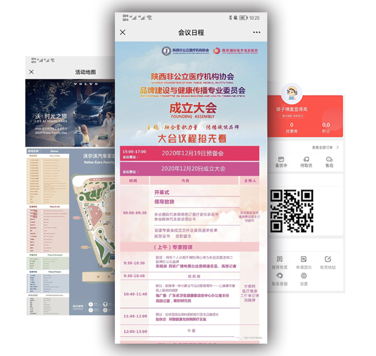 注册登录、身份认证、投票选择、投票结果、自主报名、数据展示、活动时间、活动详情、留言回复、问卷调查、新闻资讯等……